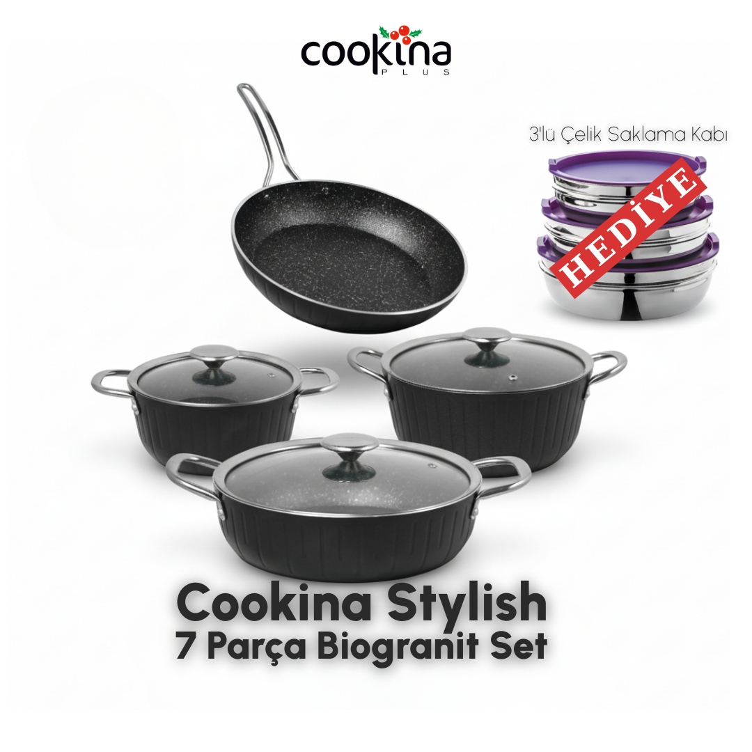 7Parça Granit Tencere Seti ve 3'lü Saklama Kabı