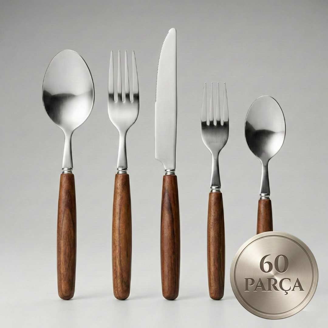 Akasya Serisi 60 Parça 12 Kişilik Dev Ziyafet Seti (Özel Ahşap Saplı)