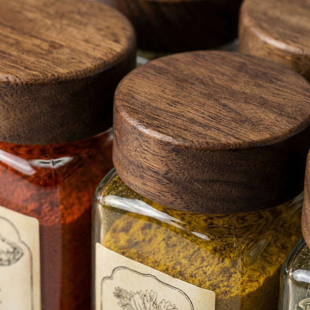Vakumlu Koruma: Ahşap kapaklar, baharatlarınızın tazeliğini ve aromasını uzun süre koruması için tam kapanır.