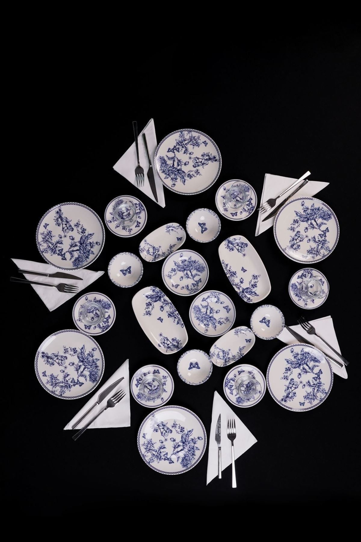 Blue Blossom 22 Parça 6 Kişilik Kahvaltı Takımı Porselen