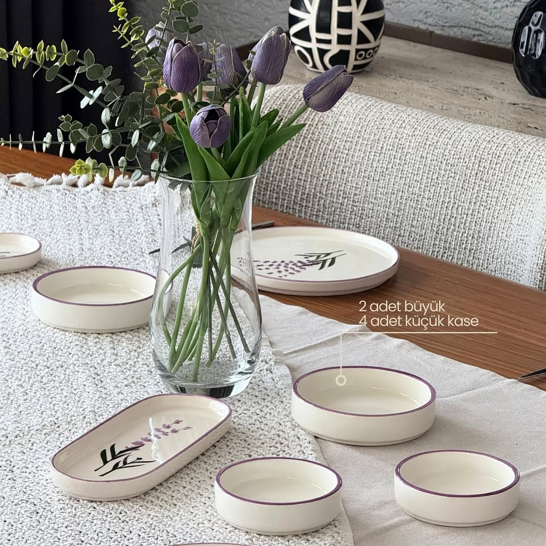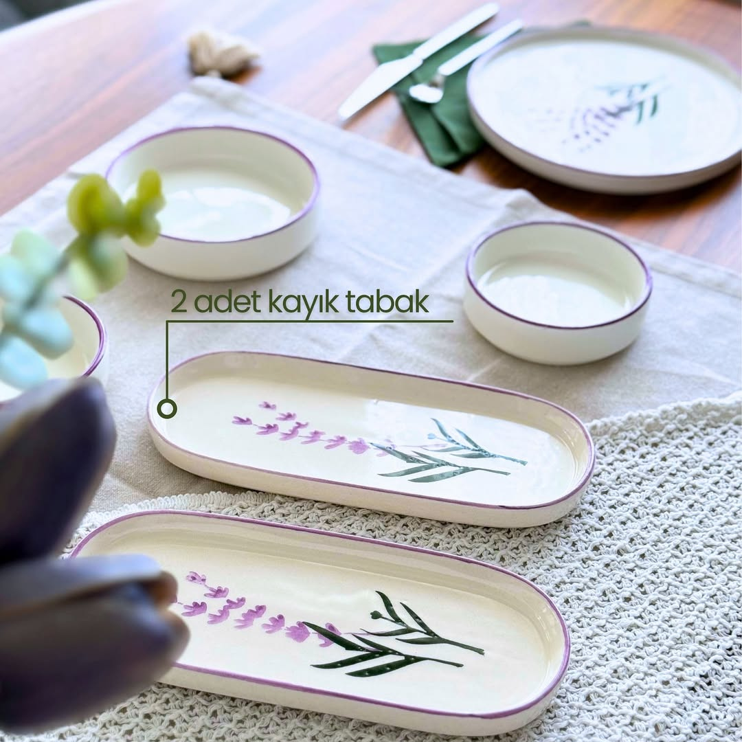 Set İçeriği : 2 adet kayık tabak, 6 adet servis tabağı, 2 adet büyük kase, 4 adet küçük kase,