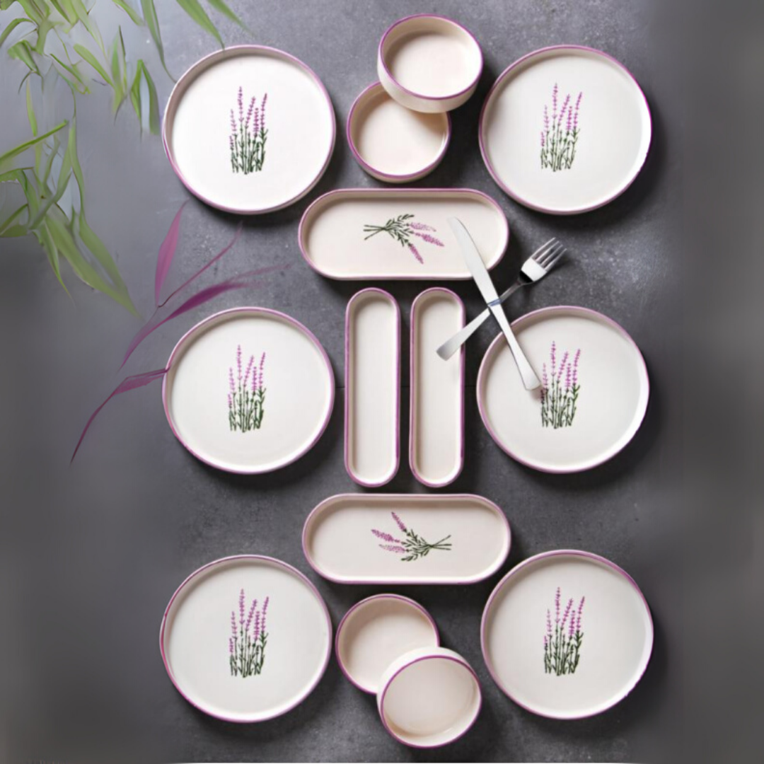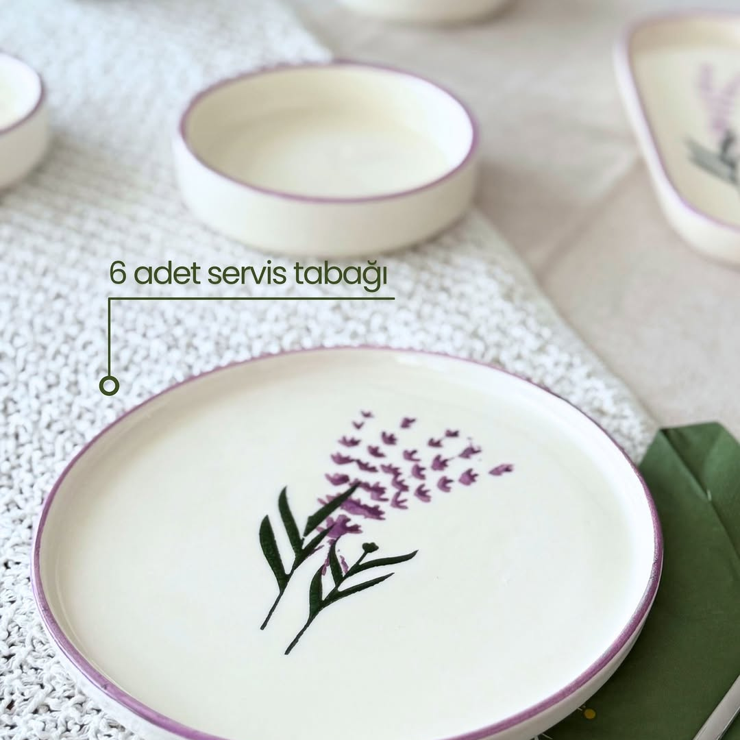 ✅ 14 parçalık eksiksiz kahvaltı takımı (lavanta desenli)